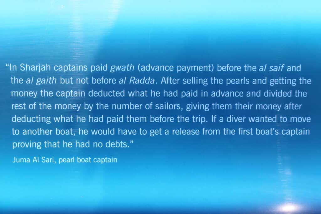 This is definitely not the last time that I will run into the dhow or the Gulf’s life at sea as I will be focusing on the pearl diving industry, with a particular focus on Dhow boats and the pearl diver’s experience. Yet the introductions to the pearling industry, the lives of pearl harvesters, dhow creation, use of boats, etc. by Maritime History Museum in Sharjah, the Bahrain National Museum, and the lecture given at the Africa Institute have definitely given me the tools to dive much deeper into the cultures associated with the Gulf and its waters.